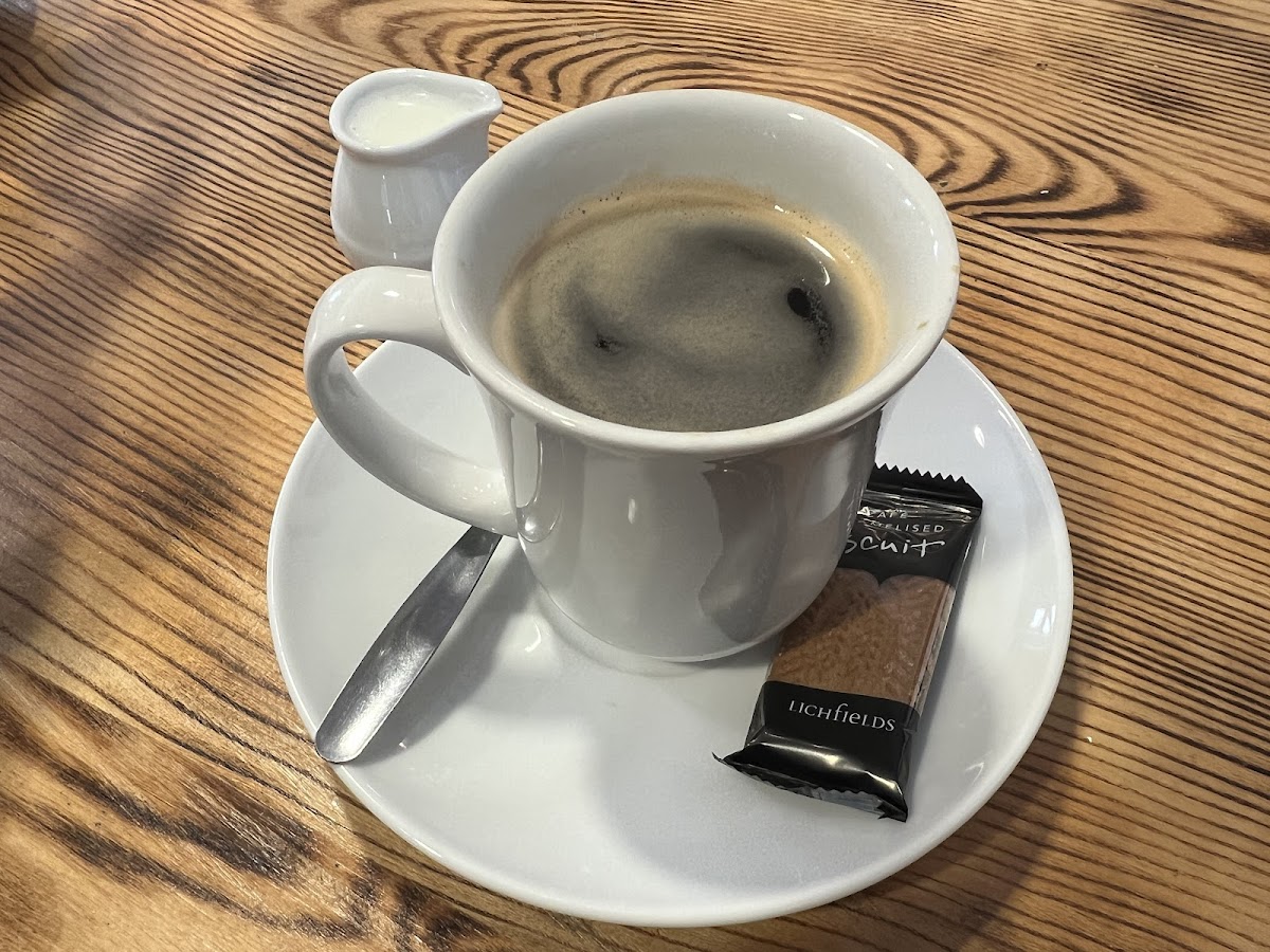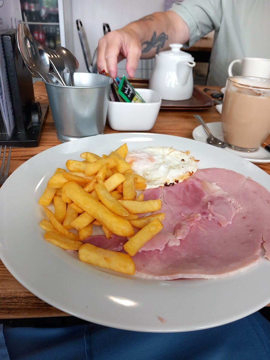Lovely little stop on a long journey. Staff were very nice, the jacket potato with bbq chicken was amazing. Really liked the place. Accessible toilet was massive and clean. Only thing I didn't like was staff petting dogs then going into kitchen and dogs where people eating.